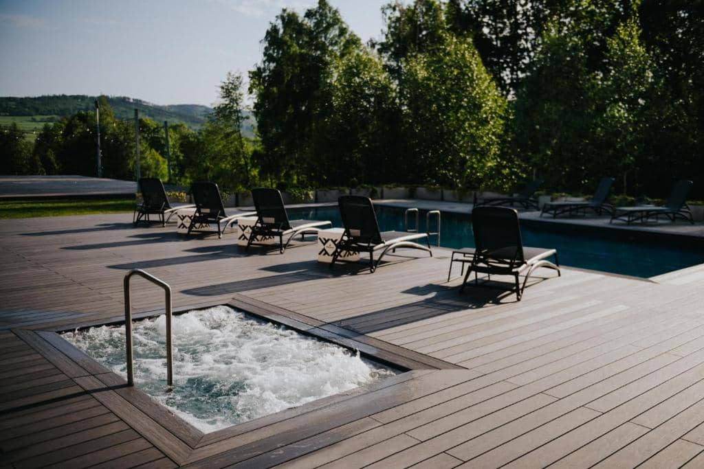 V krásně upravených zahradách u hotelu najdete venkovní bazén, kolem kterého se rozprostírají stylové odpočinkové terasy s lehátky. Bazén má 5 × 10 metrů a hloubku 1,20 m a otevřený je po celý rok. V létě nabízí především osvěžení a možnost kondičního plavání v teplotě 26 °C. Na terase u něj si pak můžete dopřát i skvělé drinky. V zimě bazén zase slouží pro ochlazení po saunování. Venku však kromě bazénu najdete i vířivku, která představuje ideální volbu pro hlubší relaxaci a odbourání stresu.