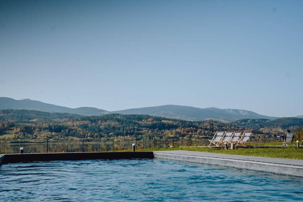 V nádherné přírodě předhůří polských Krkonoš si můžete užít luxus a relax v exkluzivním wellness resortu Lake Hill Karkonosze Resort & Spa. Tento okouzlující resort leží na okraji pohoří, v kopcovité krajině u nádrže Sosnówka. Resort leží ve volné krajině a nabízí překrásné výhledy na rozlehlou vodní plochu a kulisy lesnatých hor, které ji obklopují. Těšit se můžete na naprostý klid, protože resort leží mimo města i jinou zástavbu. Nejbližší obcí je několik kilometrů vzdálená Sosnówka. Přesto vám zde rozhodně nebude nic chybět a můžete si užít dokonalou dovolenou.