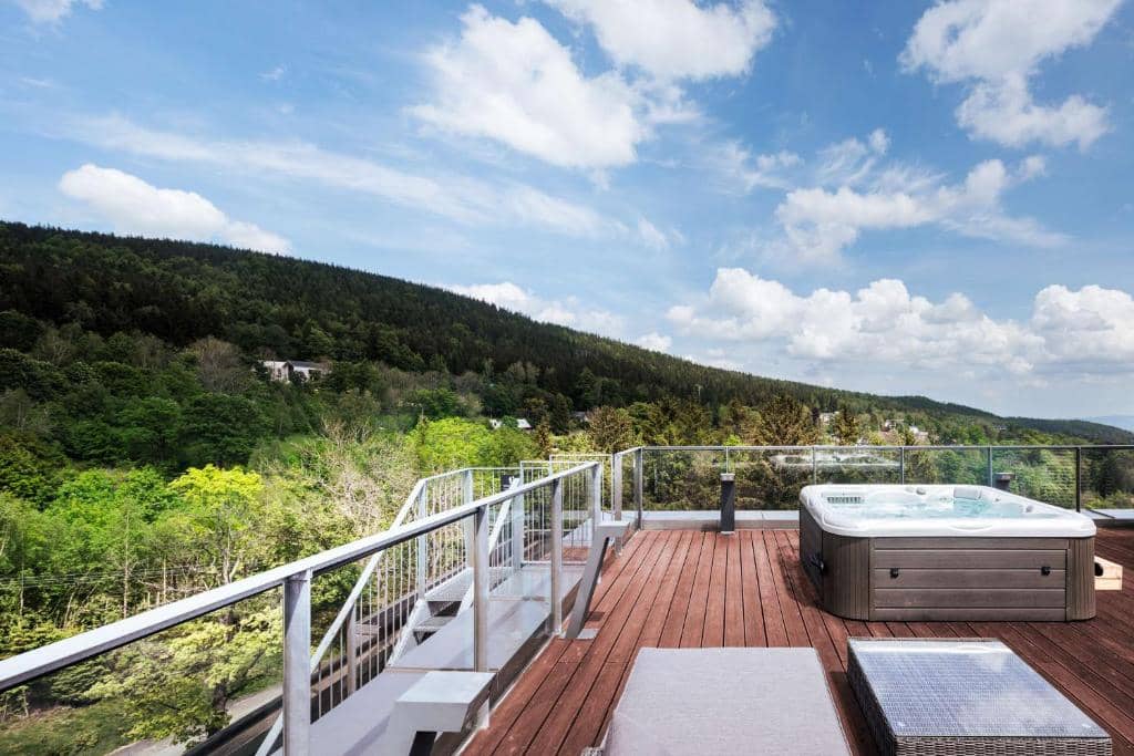 Skvělou záležitostí je pak i venkovní vířivka, která nabízí možnost celoroční relaxace v horké vodě s výhledy na okolní horské scenérie.
