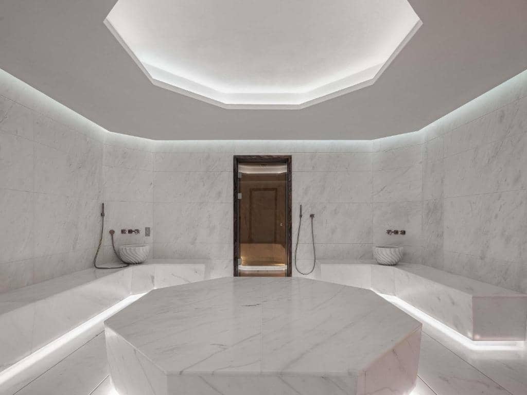 Skvělou záležitostí jsou pak autentické turecké lázně hammam s parní lázní s maximální vlhkostí vzduchu. Prostředí v parní lázni podporuje relaxaci svalů, uvolňuje tkáně a ulevuje od bolestí pohybového aparátu. Vynikající vliv má parní sauna na dýchací cesty a taky na pokožku.