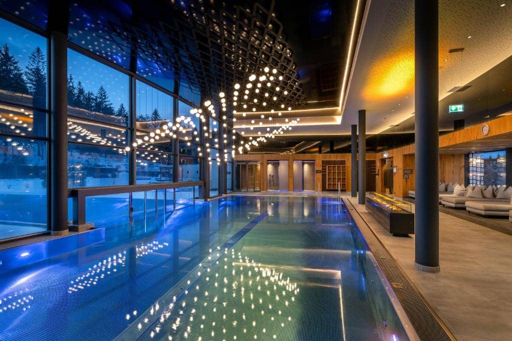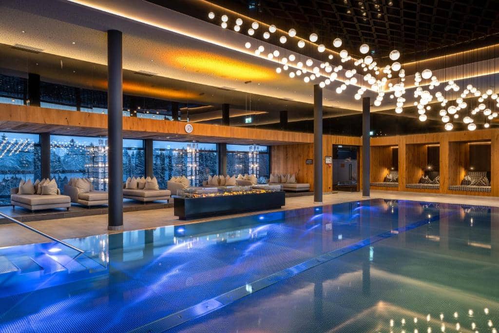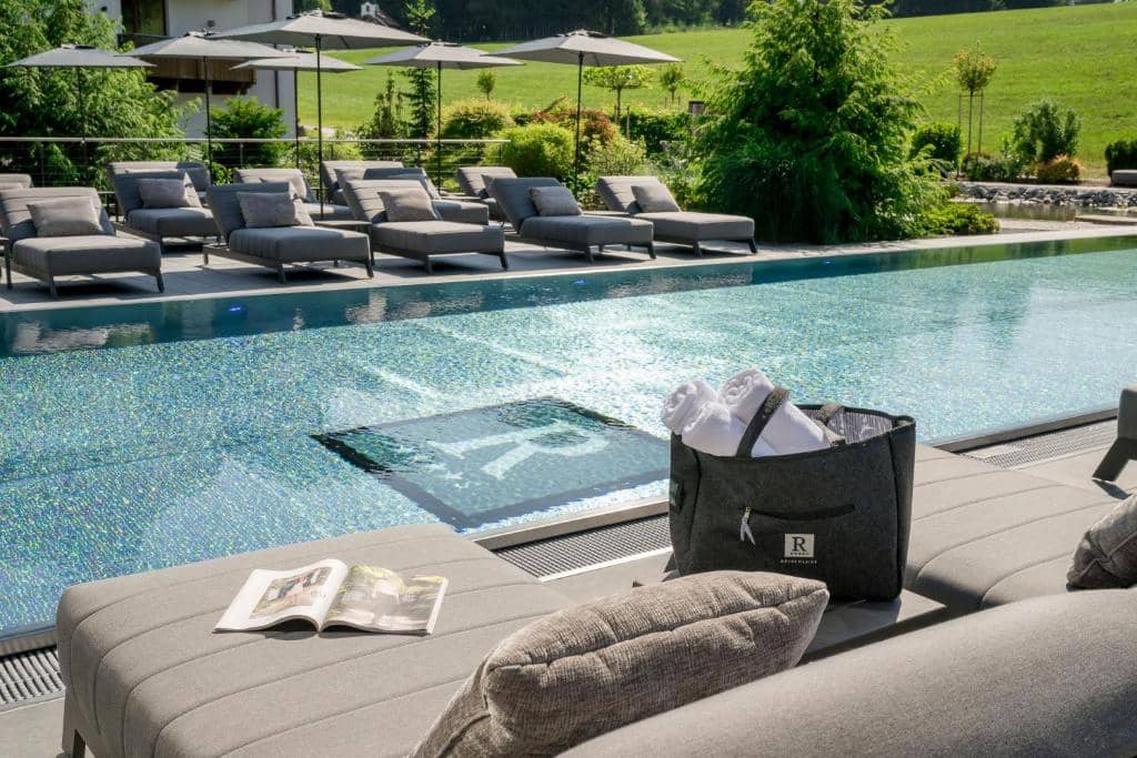 Vodní svět hotelu Reischlhof zahrnuje vnitřní i venkovní bazény v nádherném prostředí v obklopení dokonalými zahradami a odpočinkovými terasami s lehátky a v designových vnitřních prostorách s panoramatickými výhledy či luxusními lůžky. Využívat můžete: